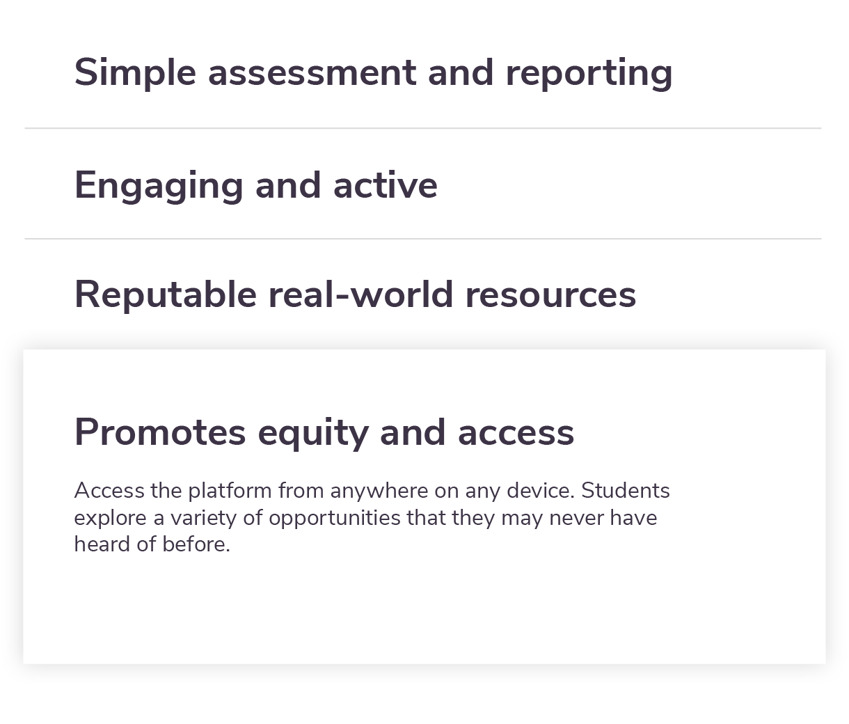 Our award-winning content engagement platform is simple to use, engages students, and raises awareness to better prepare them for future success.