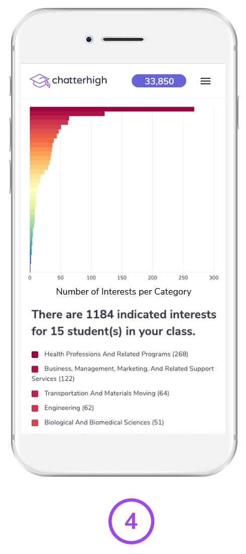 Discover new and exciting career options you may never have even heard of! ChatterHigh will build you a personalized profile about your interests as you answer more questions on the platform. You can use this information to research education and career pathways and possibilities to support your career development course work and decisions after high school.