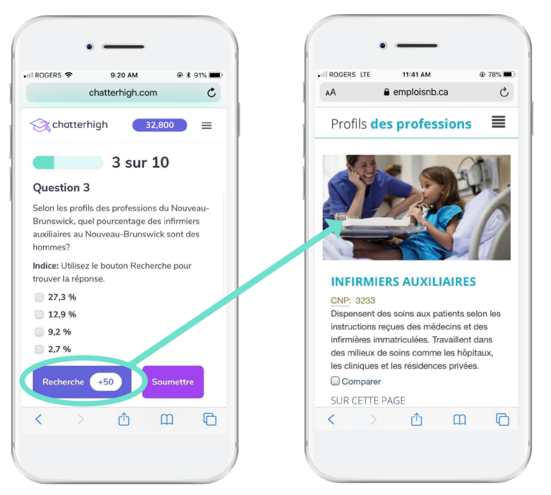 En utilisant notre approche de « recherche et apprentissage », les élèves s’engagent activement dans votre site Web pour trouver les bonnes réponses aux questions présentées sur la plateforme. Ils obtiennent des points pour les bonnes réponses et peuvent ensuite faire un don à un organisme de bienfaisance ou participer à des tirages.