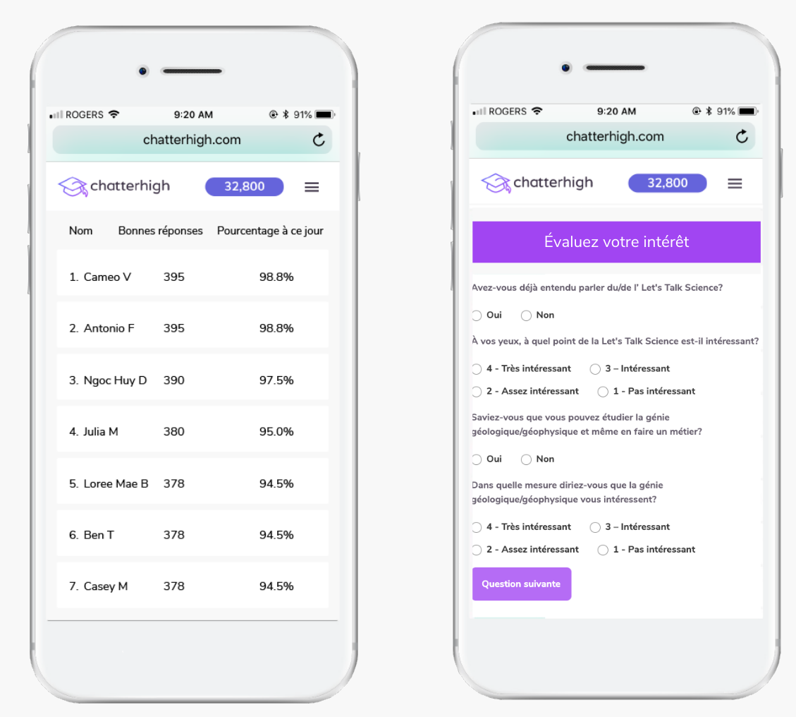 ChatterHigh est utilisé dans les salles de classe d’écoles intermédiaires et secondaires et vous pouvez choisir la tranche d’âge qui convient le mieux à votre contenu ou votre stratégie d’information.